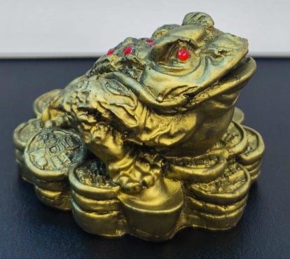 Según las creencias del feng shui, la rana de los dineros ayuda a atraer y proteger la riqueza, y los guardias contra la mala suerte .