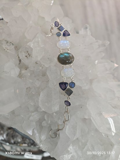 PULSERA DE PLATA DE LABRADORITA , PIEDRA LUNA Y AMATISTA DE MUCHA CALIDAD