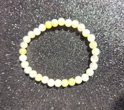 Esta pulsera esta ensartada en hilo de silicona con doble vuelta.