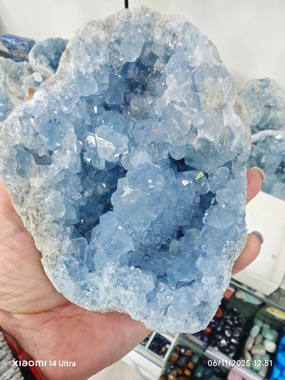 La celestina se considera una piedra de vibración elevada que conecta con el mundo espiritual. Tiene una energía suave y calmante, parecida a la aguamarina. Aporta claridad y una comunicación fluida. Infunde paz y suele ser adecuada para la meditación y para los procesos creativos