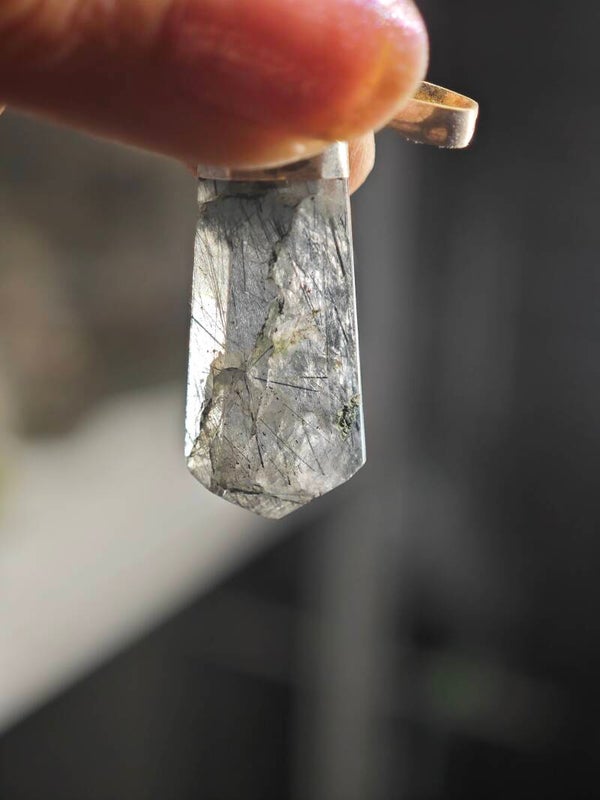 CUARZO CON TURMALINA COLGANTE EN PLATA DE LEY