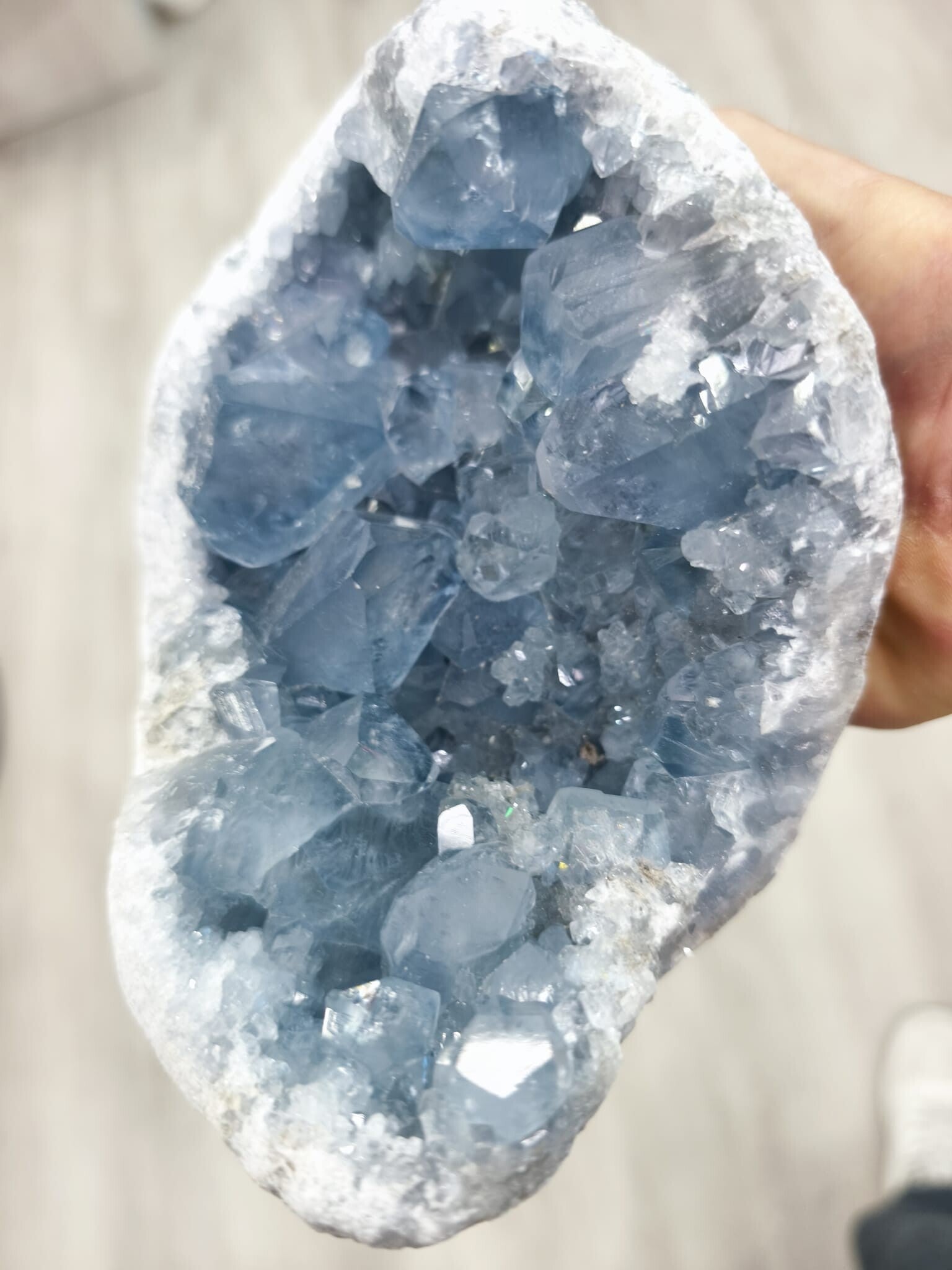 La celestina se considera una piedra de vibración elevada que conecta con el mundo espiritual . Tiene una energía suave y calmante, parecida a la aguamarina. Aporta claridad y una comunicación fluida. Infunde paz y suele ser adecuada para la meditación y para los procesos creativos