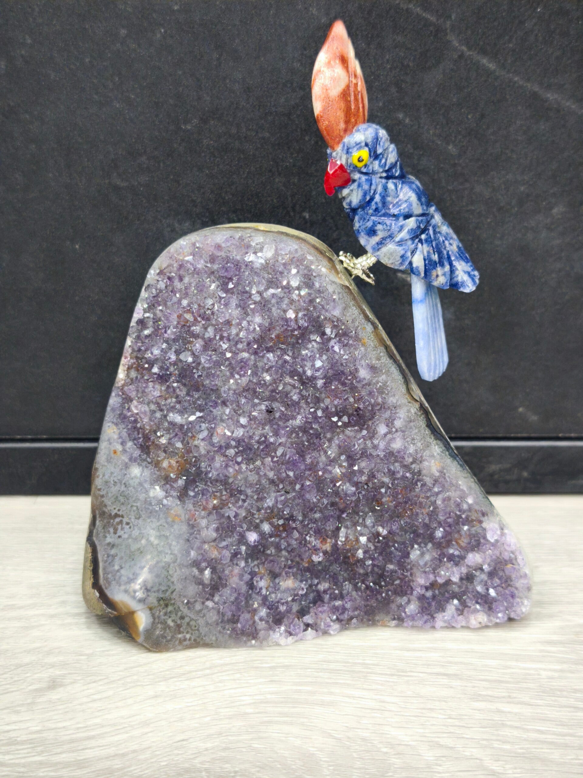 PAJARO MINERAL SOBRE BASE DRUSA AMATISTA