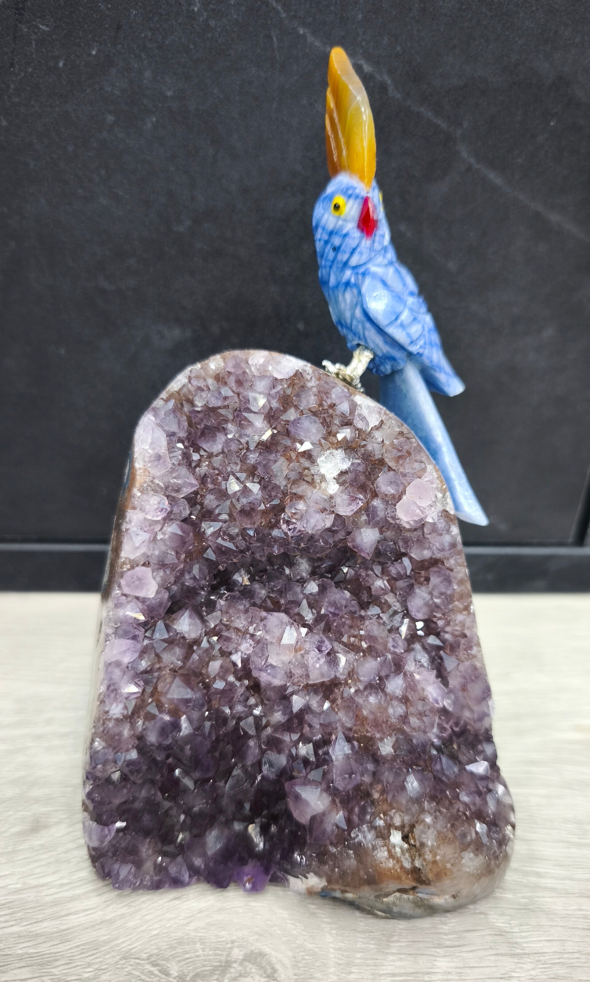 PAJARO MINERAL SOBRE BASE DRUSA AMATISTA